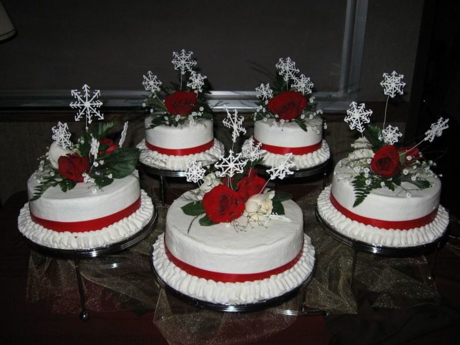 Home made snowflakes as a winter touch to traditional wedding cake.