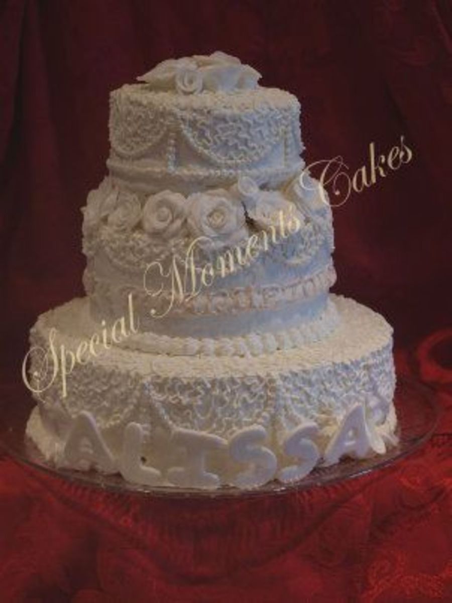 This is a baptism cake..MY FIRST TIERED CAKE..I would appreciate any coments...:) It's white cake with dulce de letche and pineapple filling and covered in chantilly..