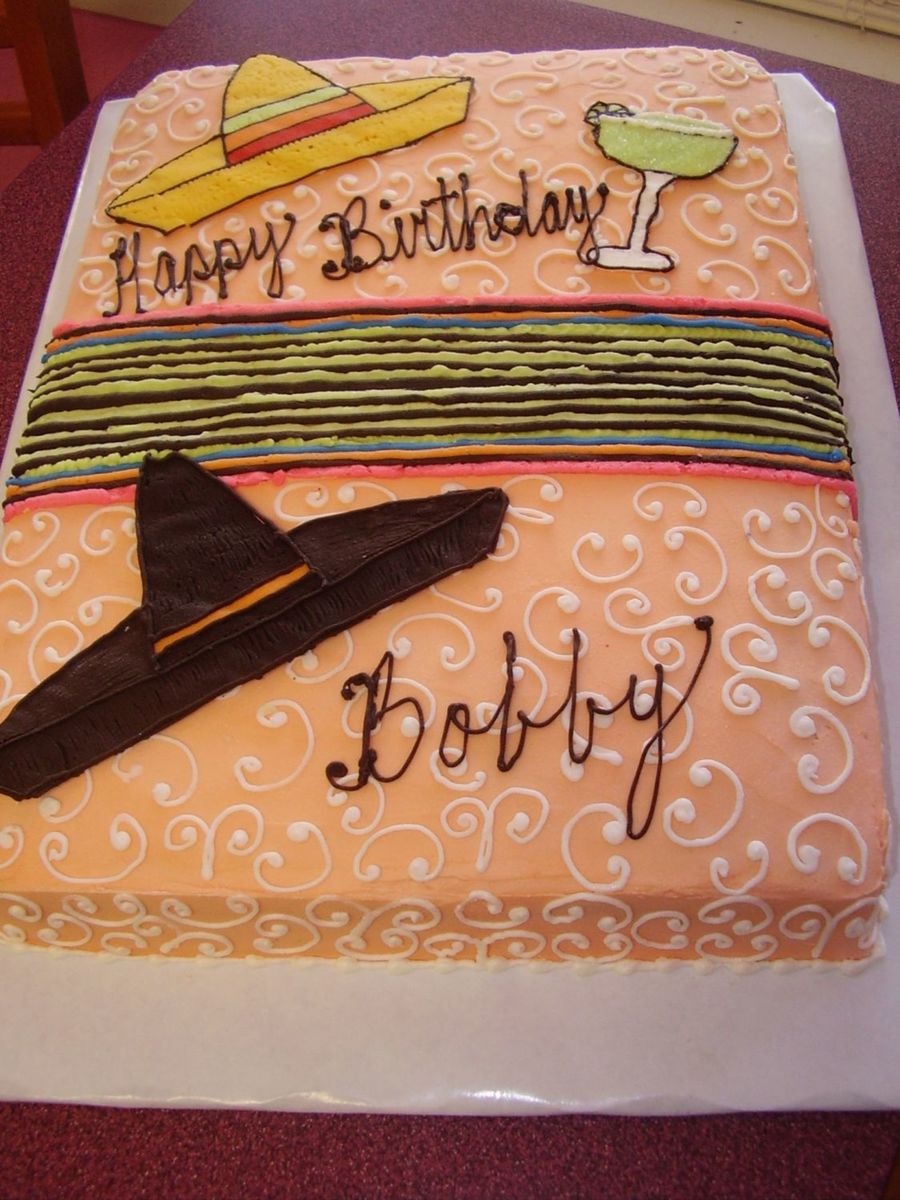 Customer gave me invitation used for this party & asked that I incorporate it some how on cake. BC frosting, FBCT. 11 x 15 sheet. She loved it!
