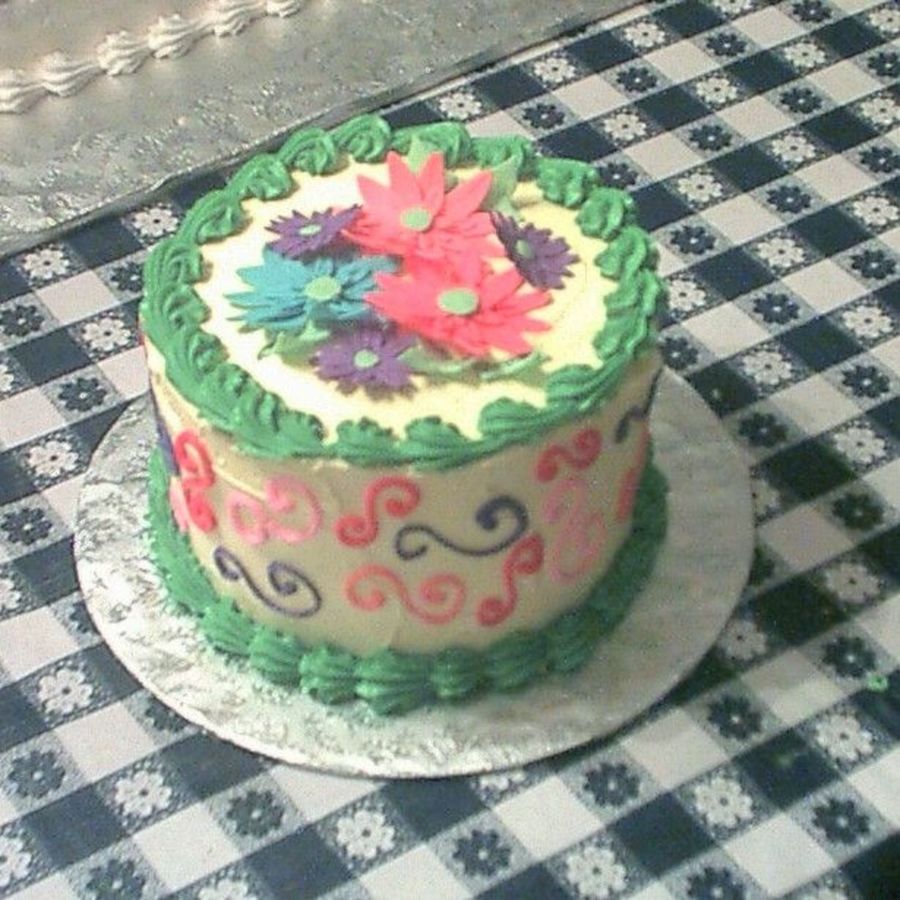 Just an extra cake for a picnic - a way to use up the extras I'd baked and icing I'd made - along with extra flowers that I tend to make.... 1/2 & 1/2 blueberry filling