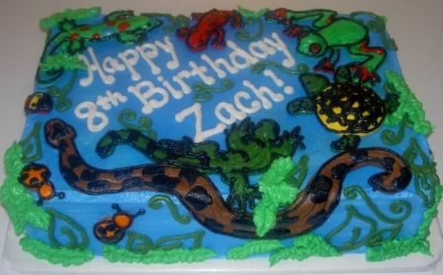 Based on a design by Jenn Cowin. All BC. Birthday boy had specified certain creatures he wanted on the cake.