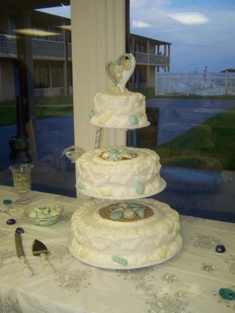 I love doing beach wedding cakes. This cake was cream cheese flavor with butter cream icing. The bride and groom loved it.