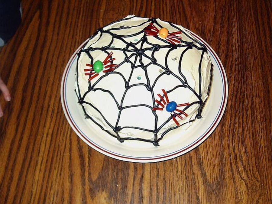 Another of my first attempt at a decorated cake. Simple spiderweb design with spiders made out of peanut M&M's & licorice string legs.