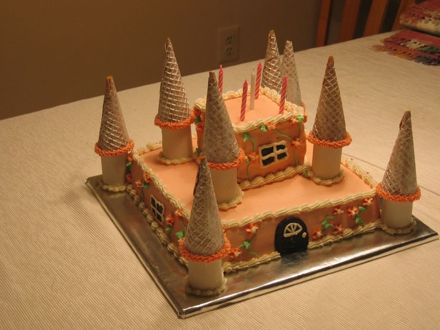 I made this for my daughters 5 bday. Ok... I'm not completely satisfied with the way this turned out. The windows look completely crooked and I ran out of luster dust while doing the cones....ugh. Plus with 2 kids in tow trying to decorate this was a blast!!