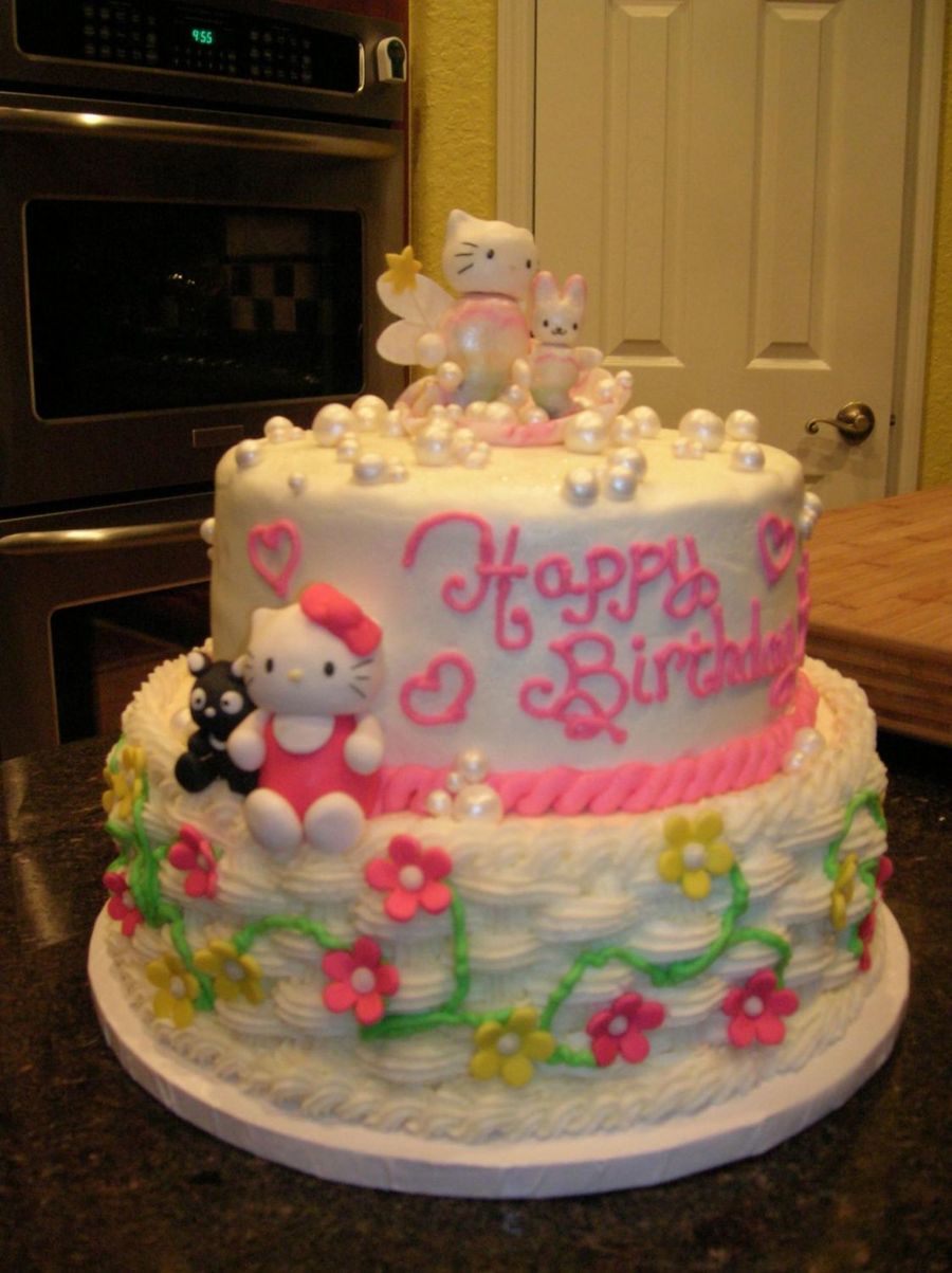Hello Kitty cake, 10" vanilla and 8" chocolate. The mom had 2 color themes going on. Pastels (fondant topper was made to match the invitation) and hot pink ( to match the napkins/plates/etc.). Fun cake to do, and trying to incorporate both color schemes was a challenge :) TFL!