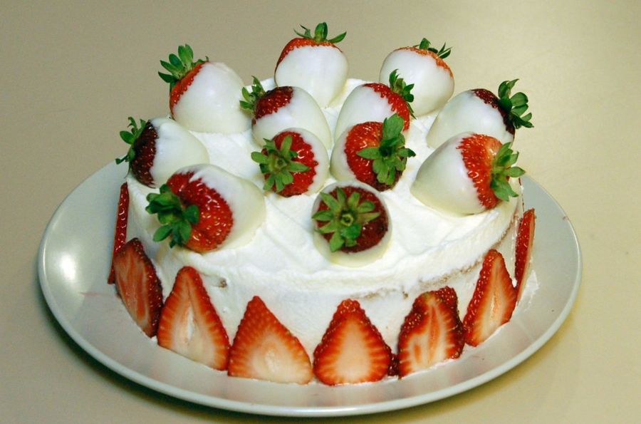 Well this was a cake for someone who is allergic to almost everything that is good. Here is a strawberry cake with strawberry preserve and white chocolate cream. It was really, really sweet because of the white choc.....