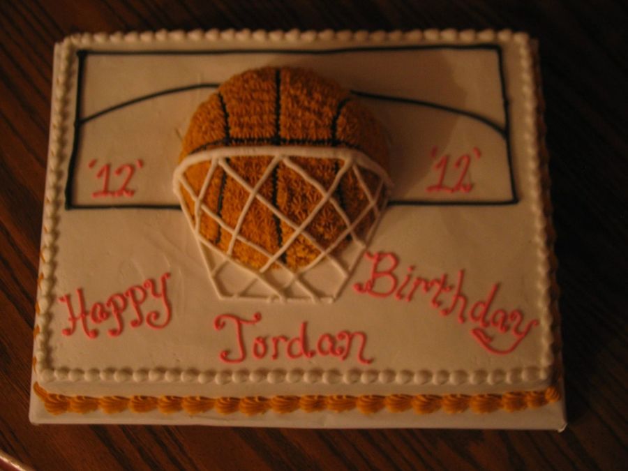 This was a 11 x 15 sheet cake with basketball made from a pyrex bowl. All bc.