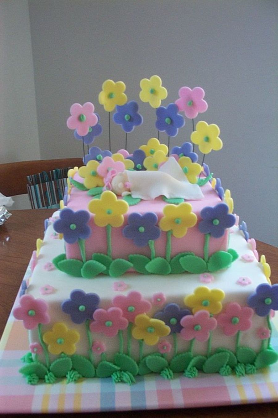 This is my other entry for the county fair. Cakes are covered in fondant and decorated with fondant flowers, leaves and baby. Thanks for looking! :)