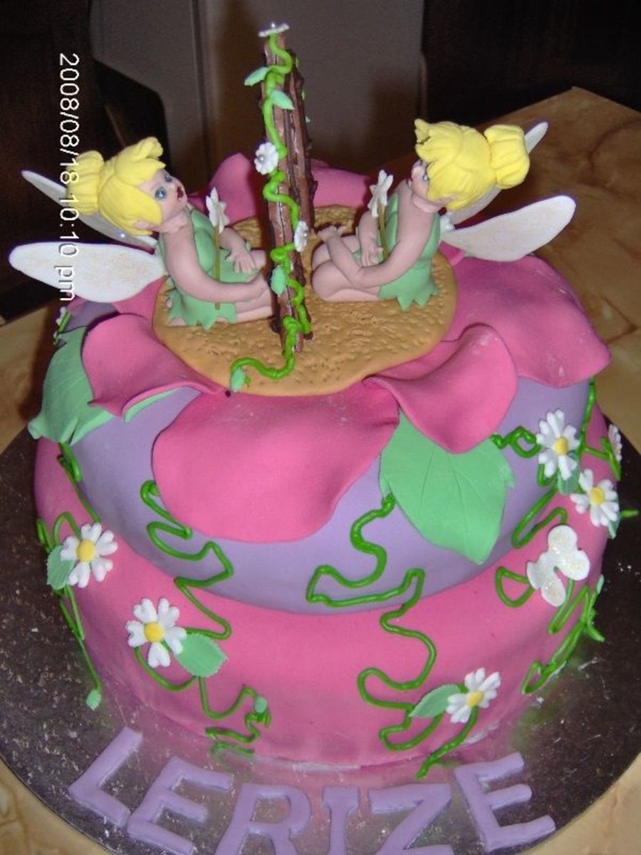 Had to make a Tinkerbell cake for 2 little girls who had one party, so there needed to be 2 Tinks on the cake. Decided to make the look at each other, as if looking in a mirror. Was very pleased with the effect.