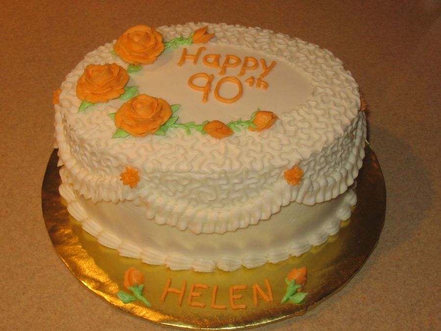 Here's a small birthday cake made for a friend's mother. BC icing and roses on a basic vanilla cake. 90 years old - God bless her.