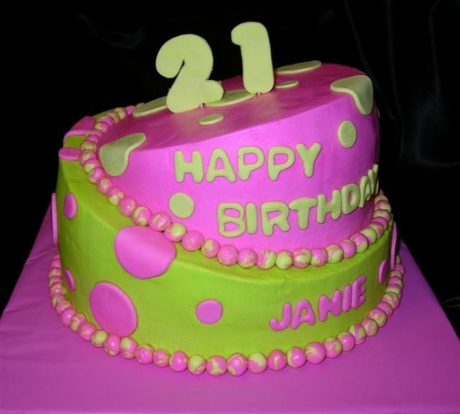 It was a hot pink lime green weekend. lol. Made this TT for a 21st bday. Buttercream icing and MMF decorations.