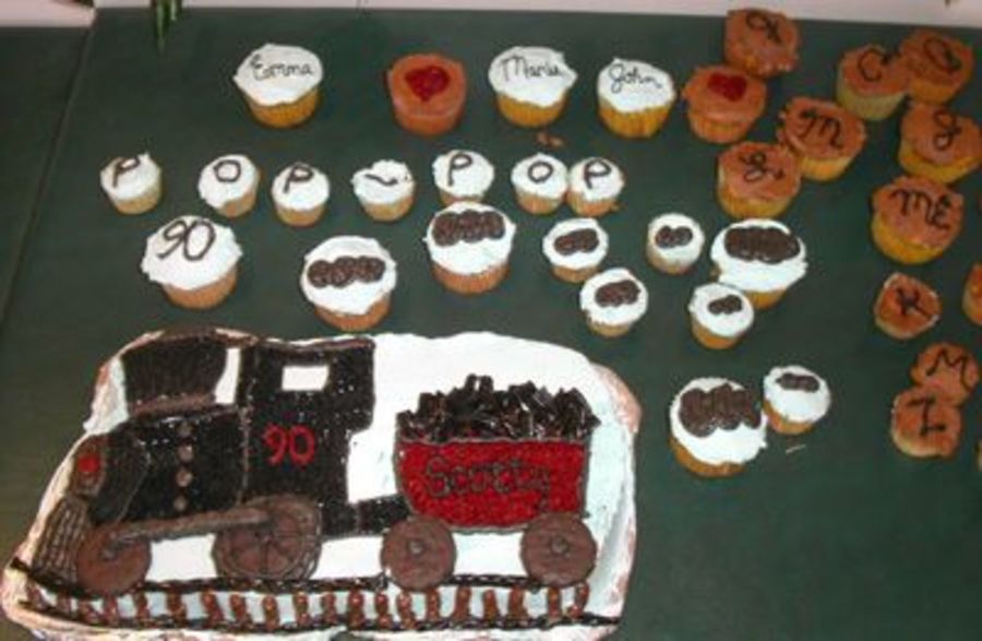 This was done using a wilton Thomas cake pan, but I used a color scheme that matched a photo of my grandfather working on a train. Its all buttercream with some licorice accents on the tracks.