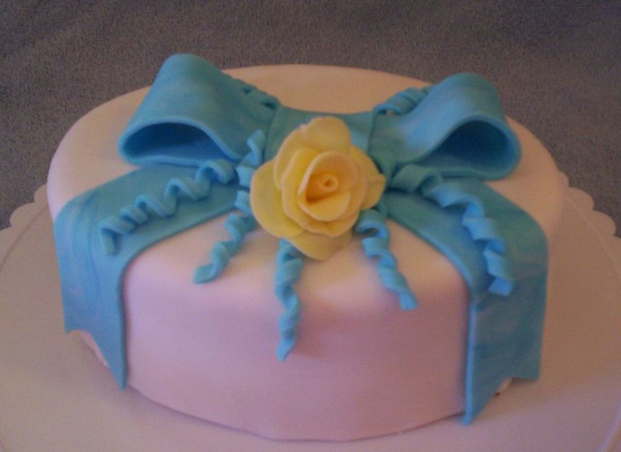 Here's my first fondant covered cake and fondant rose from Course III. (Luckily you can't see the back, i'm going to have to practice!! :) )