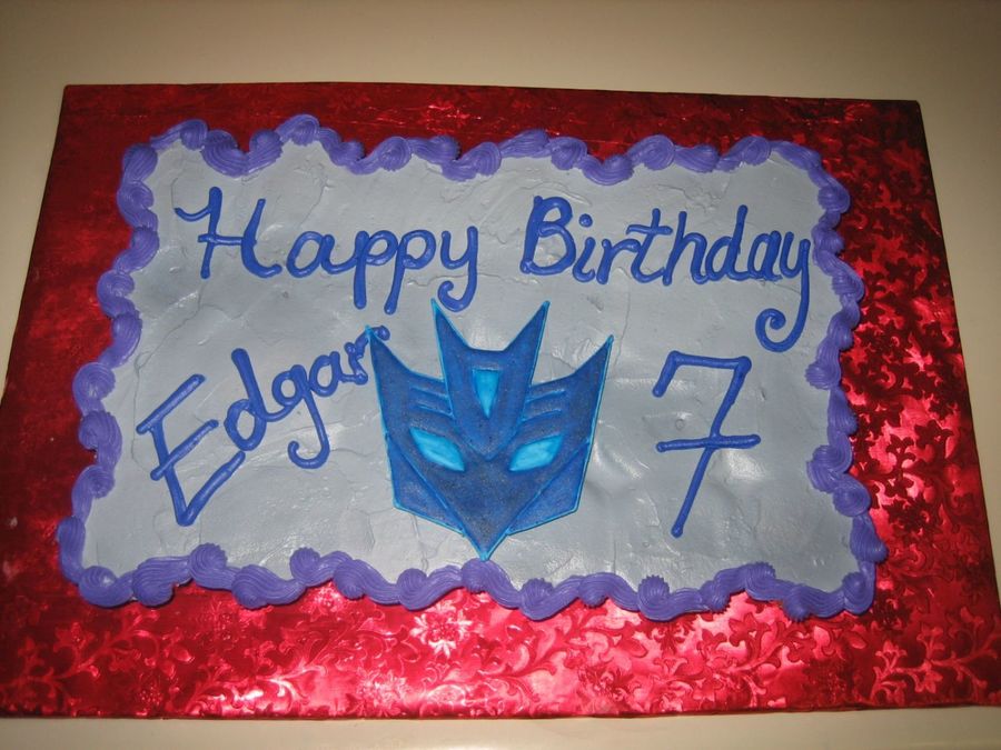 My firs cupcake cake. Gray pasty pride icing, reverse shell 21 border, decepticon colorflow piece. Pattern copied and enlarged from coloring page, for better color piece was hand painted with diluted in vodka icing color and shimmer dust.