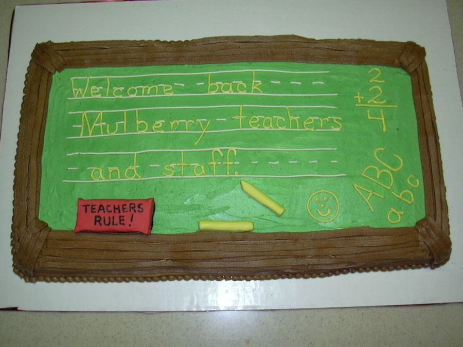 A cake to welcome back the teachers and other staff members at DD's school. All BC with fondant chalk and eraser.