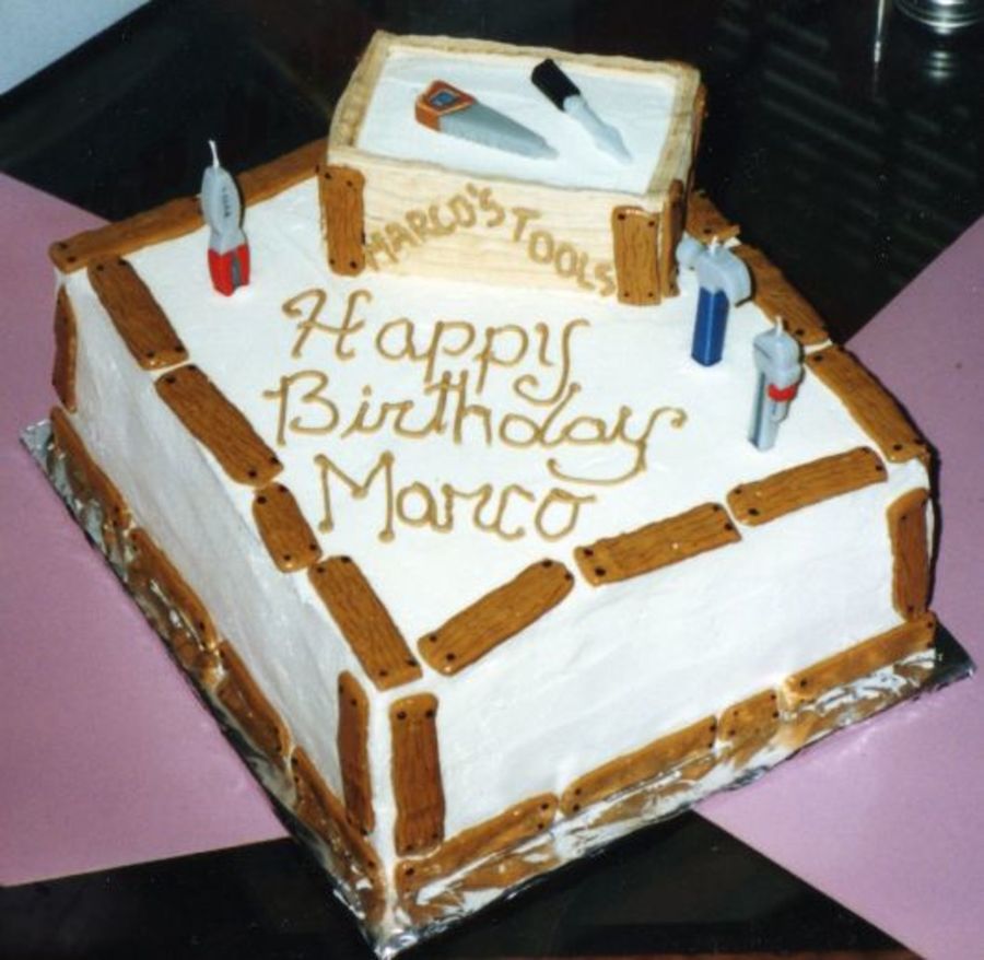 The perfect birthday cake for a handyman or husband. The planks of wood are made of royal icing.