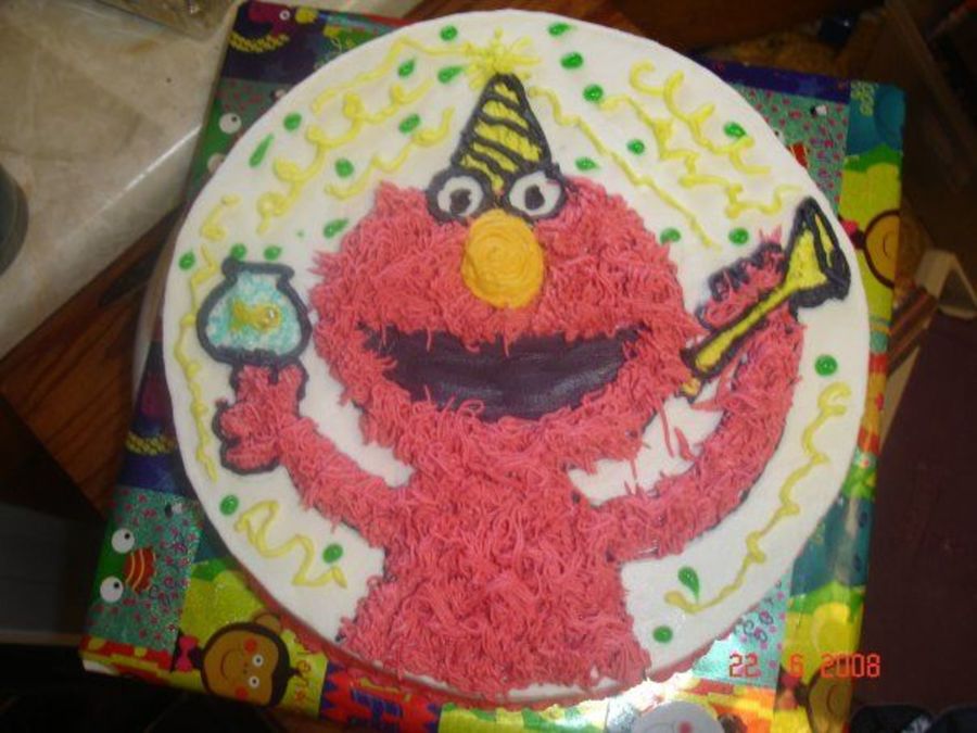 Buttercream Elmo freehanded on cake, used grass tip for Elmos fur