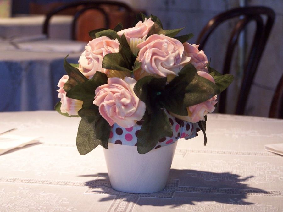 I made these for our local mothers league membership lunch. They were used as the centerpiece for each table. mini-lemon cupcakes. swiss meringue buttercream. silk leaves.
