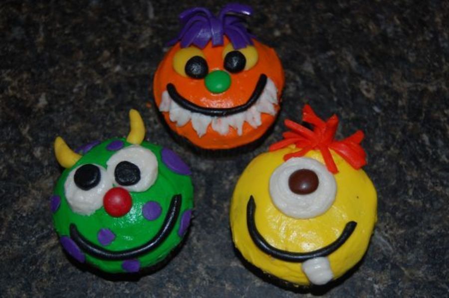I made these cupcakes for my younger brothers birthday. I didn't realize until to late that I had run out of white fondant thus I had to use buttercream. You can't really tell the difference except on the orange guy because his teeth ended up looking a little bit like leaves. :) Thanks for looking
