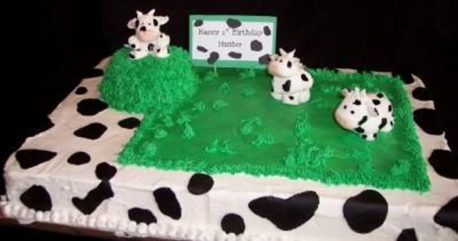 Yellow cake, BC Frosting, Fondant cows and cow spots.
