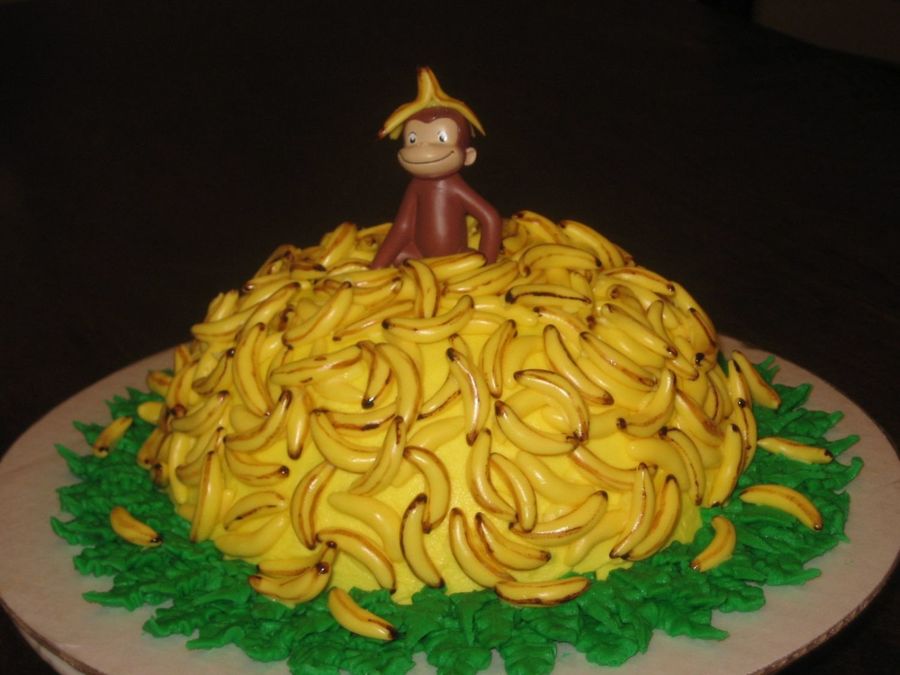 Chocolate cake with buttercream, MMF bananas, George is plastic. Inspired by bmote1. Thanks for looking!