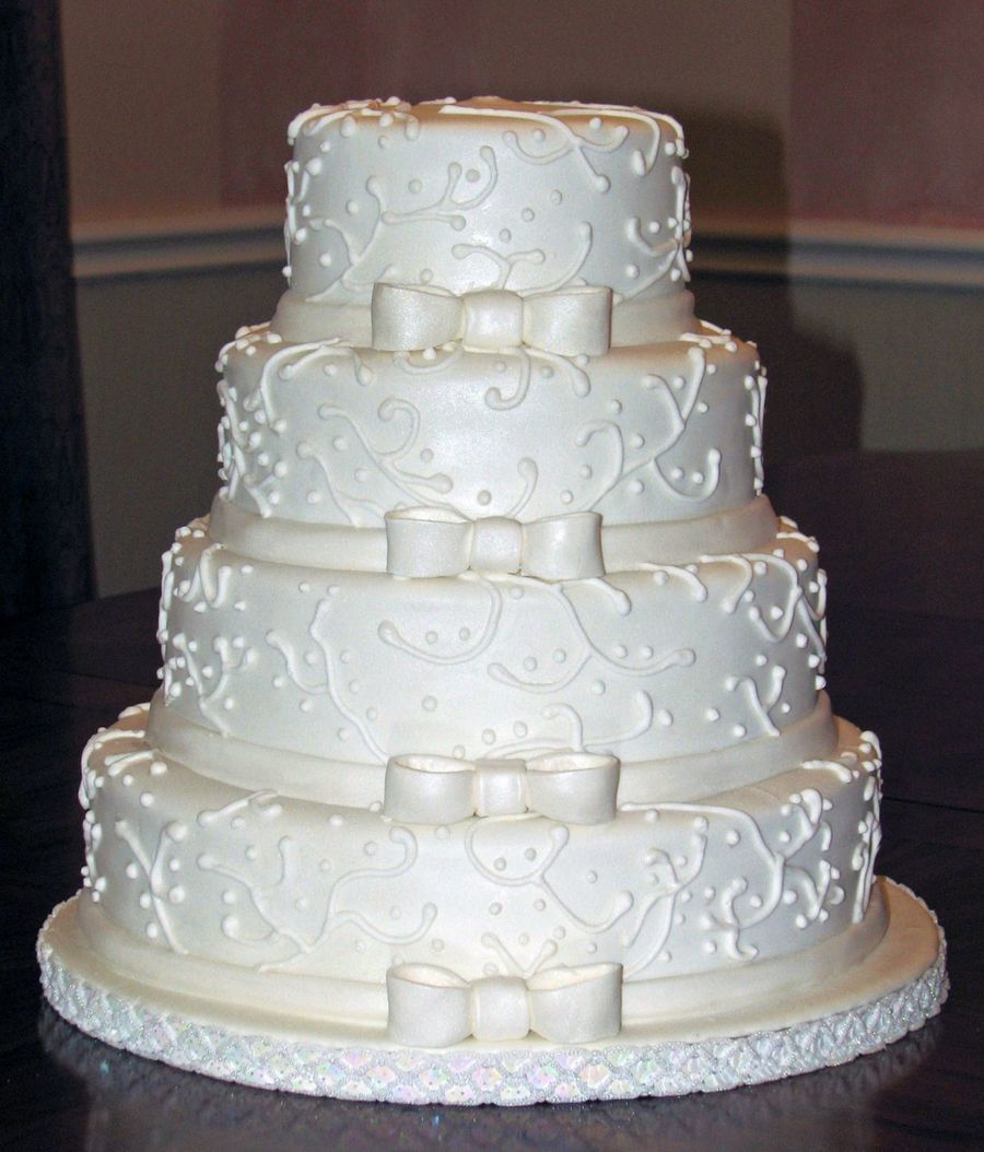 White On White Vines & Bows on Cake Central