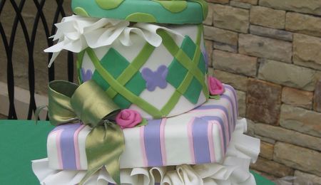 Fondant mad hatter with tri-color gum paste bow.