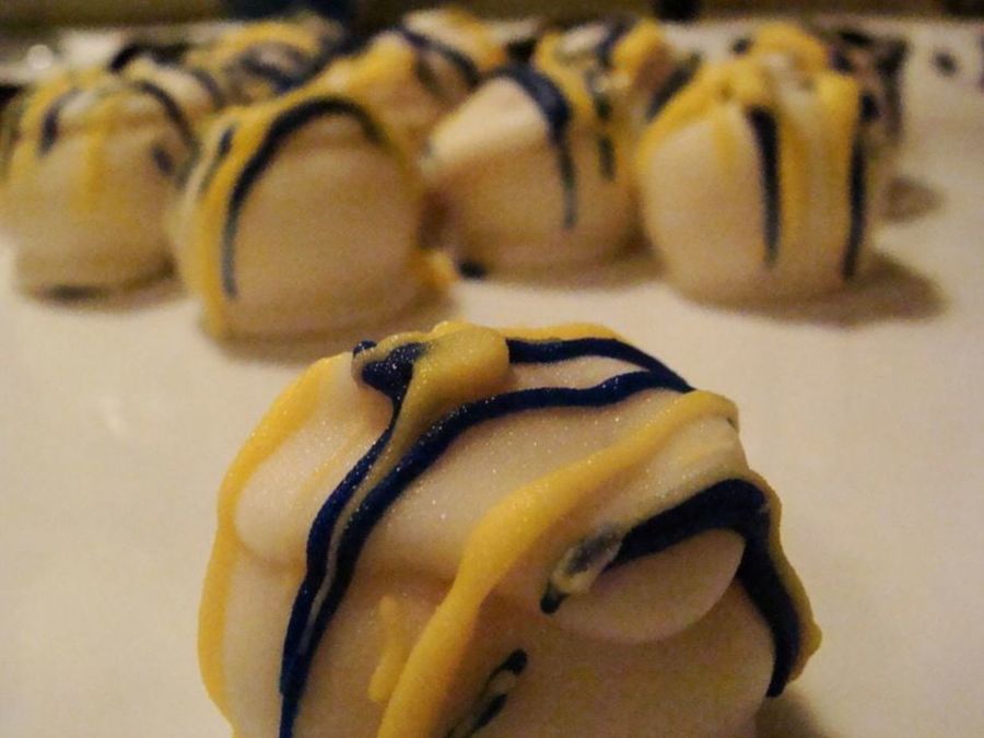 Cake balls made for my husband's fellow Coaches. Decorated in the school colors.