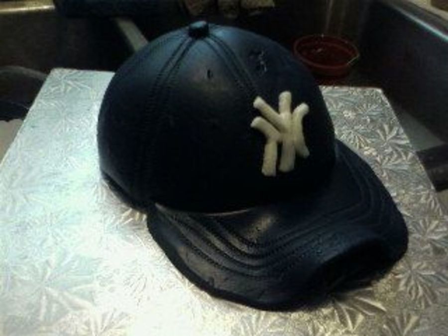 This was my first cake using mmf. I had a really hard time getting the fondant to not crack. Every time I would add water it would get too sticky. I'll just keep practicing! The cake is a devils food half sports ball with a 6" round with pudding center. I also used mmf for the bill. I chickened out using the gumpaste.
