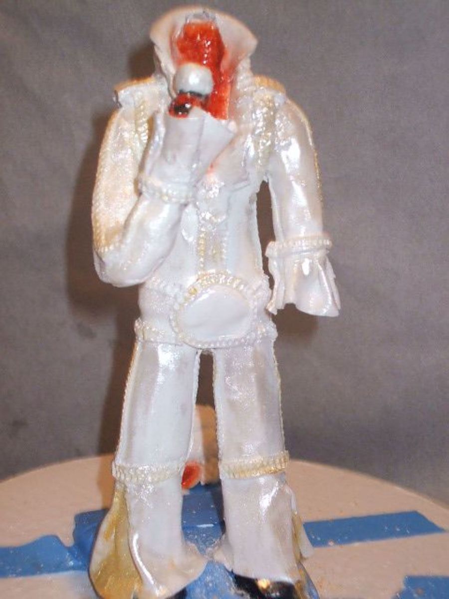 This is a sculpture of Elvis I made on a wire frame. His head is not on yet. This is made out of gumpaste.