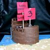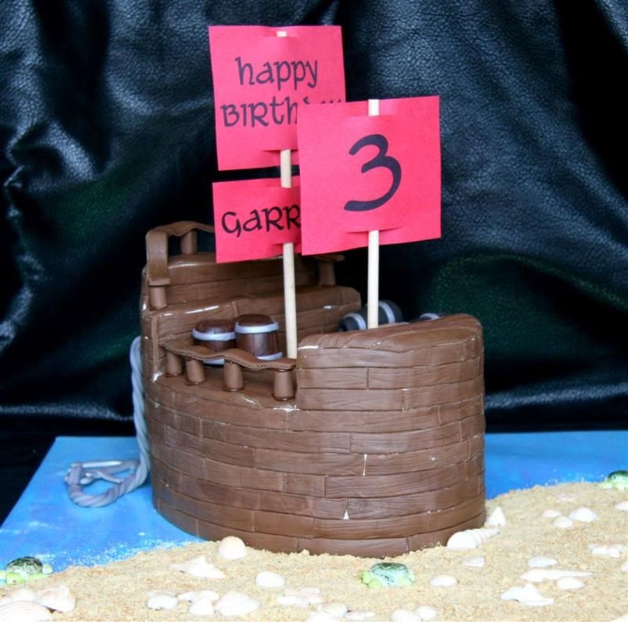 Covered in strips of fondant with a roller to make it look like wood. A lot of fun to make!!