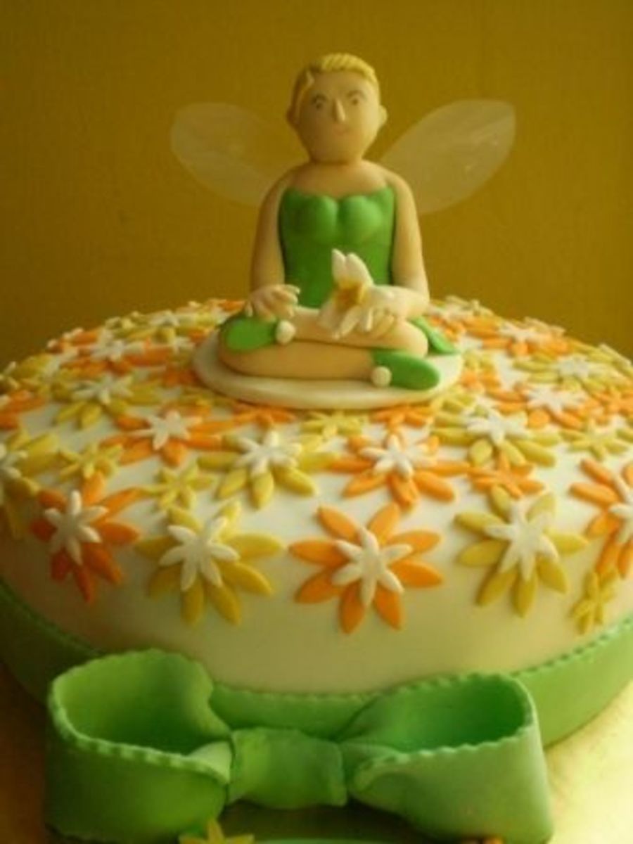 Tinkerbell in fondant, Daisies in fondant. Carrot cake covered with fondant