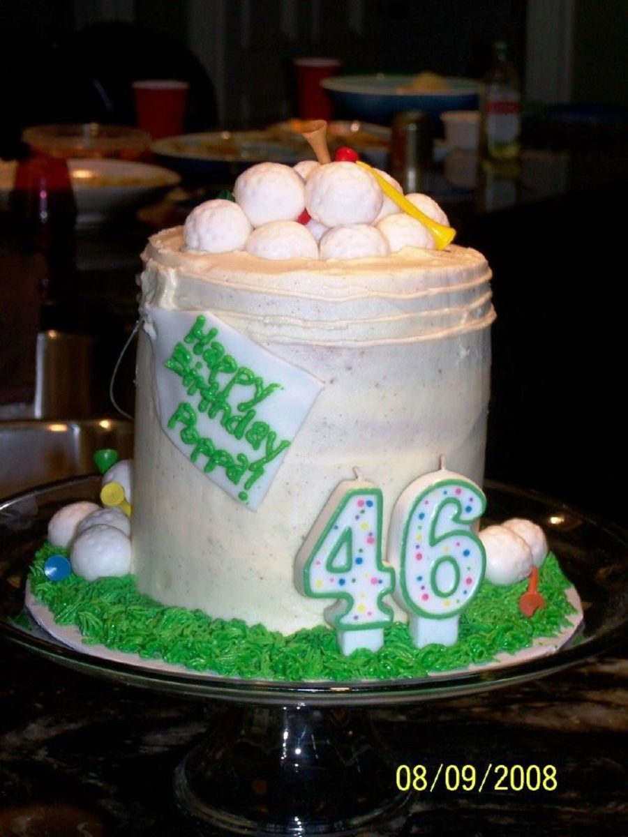Vanilla Bean pound cake with vanilla bean buttercream. Golf balls are fondant. The cake is a joke, the man keeps a 5 gallon bucket of golf balls...long story.