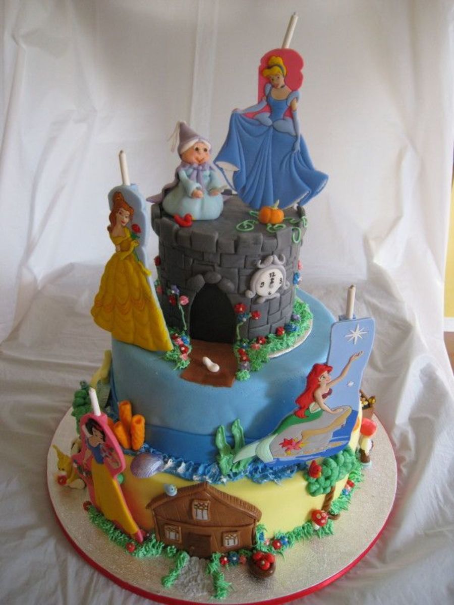 This was my daughter's 4th b'day cake. Inspired on dydemus' cake (thanks a lot!). I also added some details from one of Debbi Brown's books. My little girl wanted a cake with all princesses together and this was the end result. She was thrilled!
