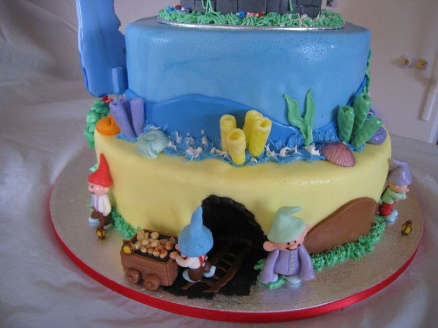 This is the back view of my princesses cake. The dwarfs were working away in the mine. I only had room for 4 of them, I told my daughter the rest were inside the mine!