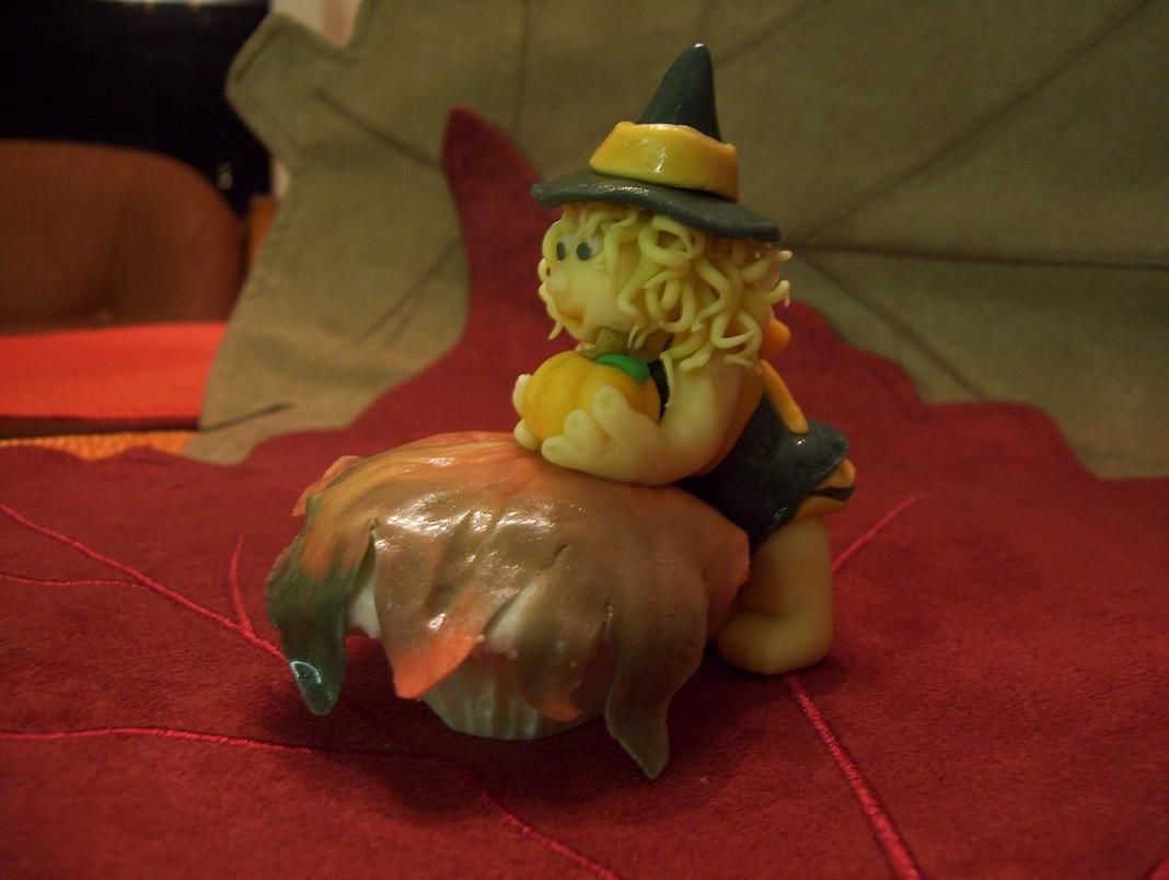 I entered this cupcake in the cutest cupcake contest for women's day magazine. She is my second attempt at sculpting fondant. Baby Witch stands at a whopping 2 and half inches tall (tip of her hat) and is shown leaning on a mini cupcake.