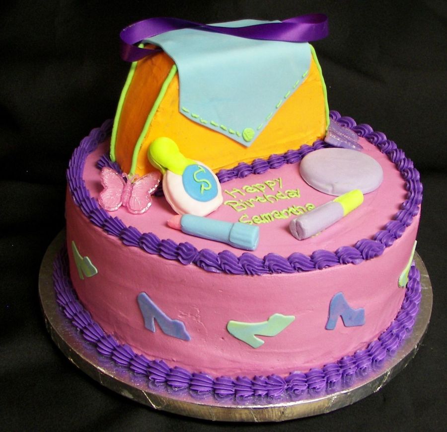 Made this for my niece's 7th bday. She wanted a "big kid" cake with a purse and makeup and stuff. I got the colors from the party decorations. This was my first purse cake. It's been one of those days, I'm very tired, but I did my best so I hope she likes it. I'm not quite satisfied but her opinion is all that matters in the end. TFL.
