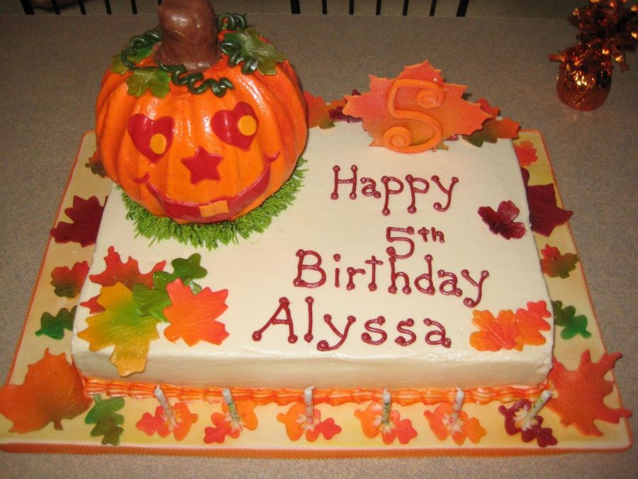 This was so much fun. I used the new wilton pan for the pumpkin. 11x15 sheet cake. All buttercream and fondant. The leaves were my favorite part to do. I used the wilton spray cans. They worked well, but I wish I had a spray air brush machine! Someday?! Thanks for looking!