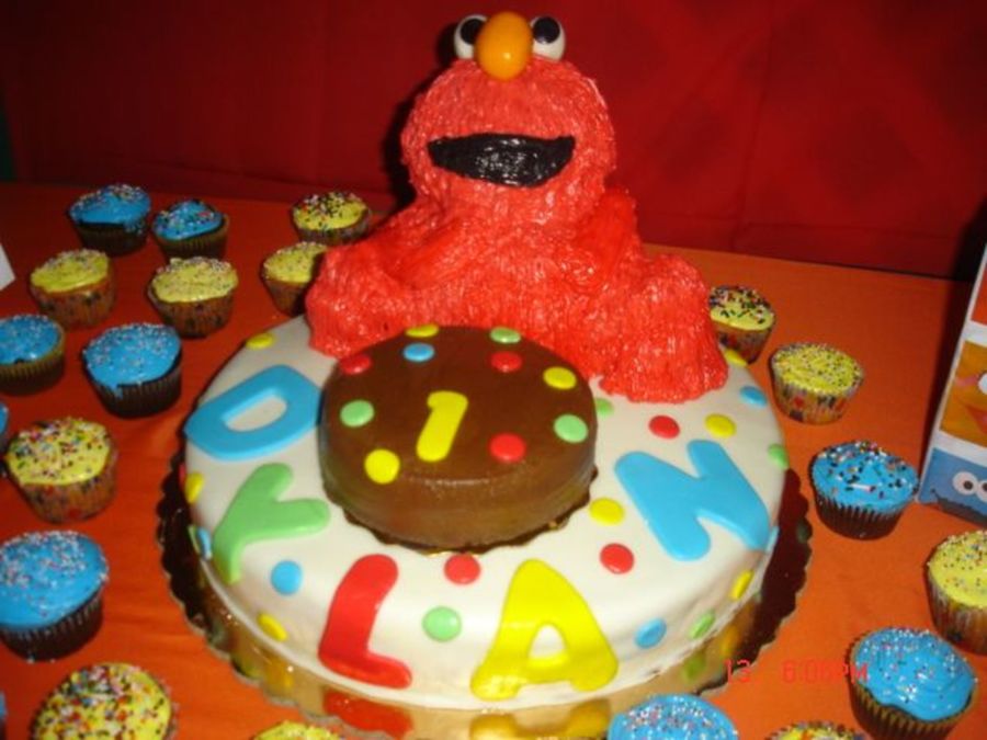 chocolate banana cake covered in chocolate BC and MMF. Elmo was made from a cuddly bear 3D pan. Chocolate cake with cream cheese frosting.