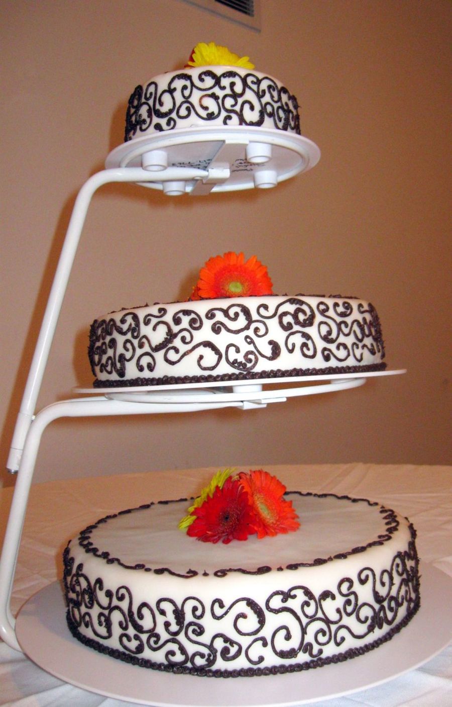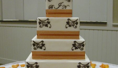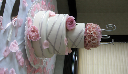 Photo is at a bad angle. Cake was on a stage and they removed the stairs. Cheesecake Wedding Cake.