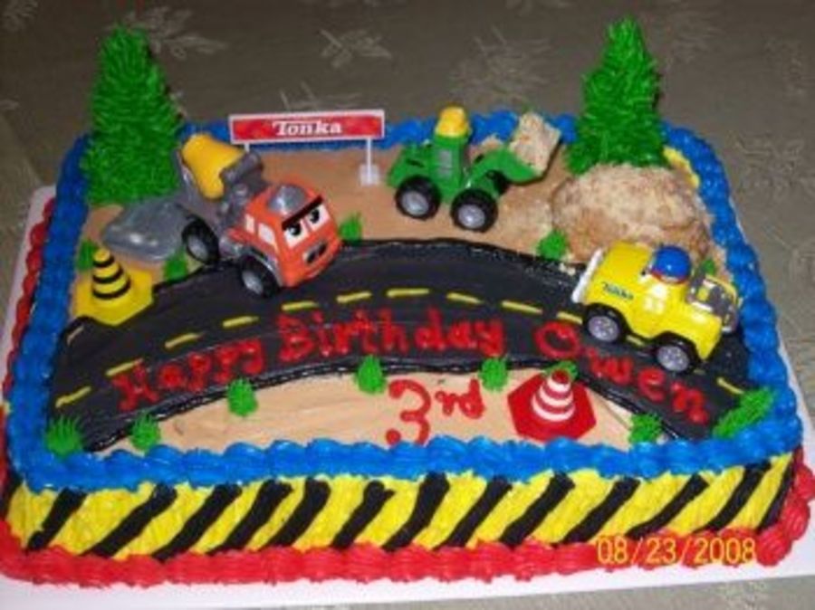 The cake is all buttercream. The trees were made from sugar ice cream cones. The trucks were toys. It was for a 3 year old.