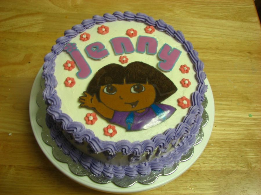 classic yellow cake with buttercream frosting and dora is a chocolate transfer