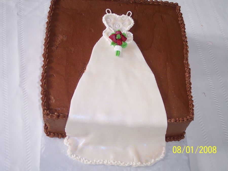 Wedding dress cake done for a girl that works with my sister. Thanks to all those inspiring cakes I have seen on here that gave me the idea to do this.