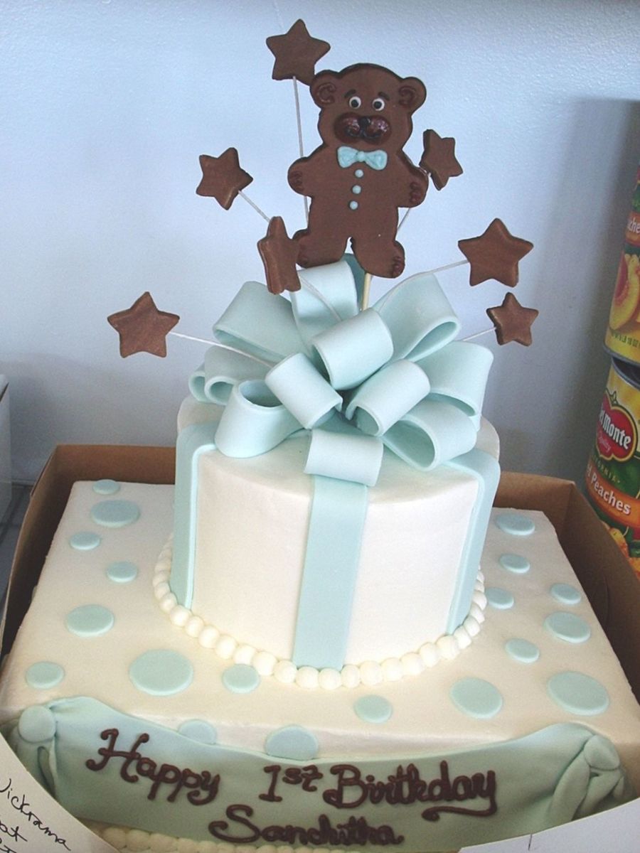 fondant teddy bear, bow and stars.