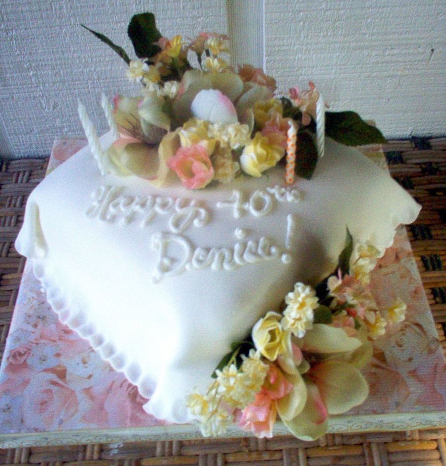 Simple, easy, fast... just ice your cake, roll out the fondant, add a deco edge, apply silk flowers (cleaned and dried), throw on a message and there ya go! This was for a close friend of mine celebrating her 40th birthday. *Side note: This was the only "serious" gift of the day she received =D