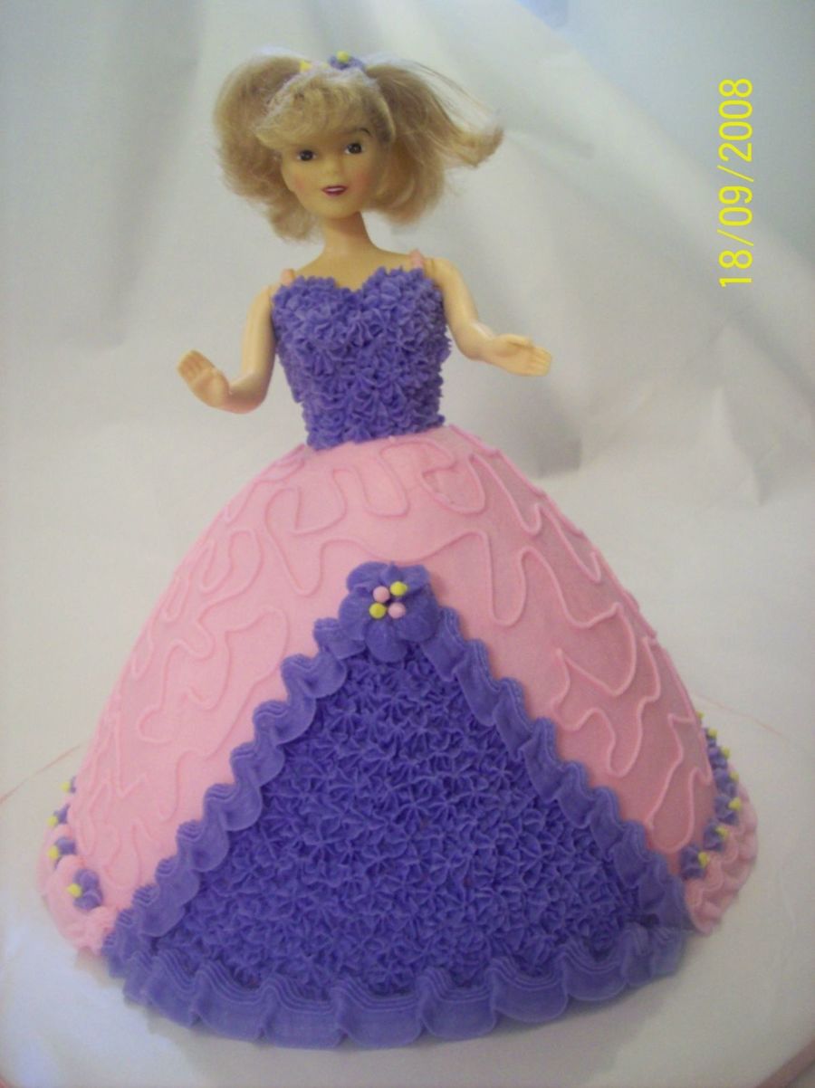 Customer asked for a pink and purple cake with a doll. She loved it! All buttercream.