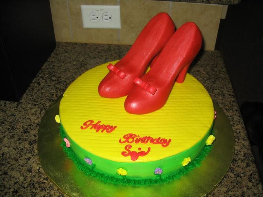 The ruby shoes were made out of candy melts and sprinkled with red luster dust.
