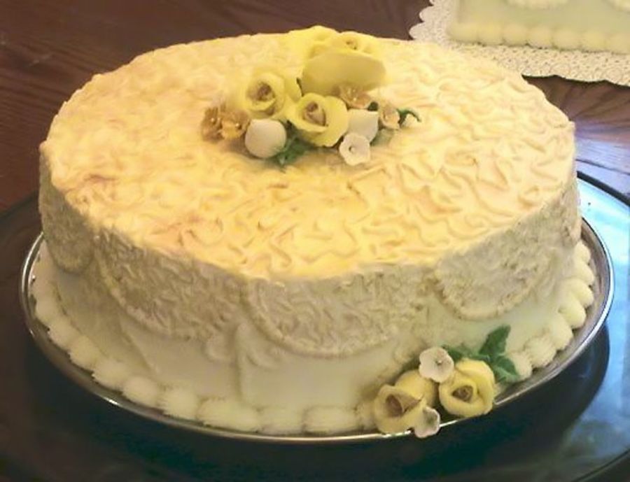 snapped these shots before clean up due to being in a light speed hurry to box and deliver. Cake is a 12" round Vanilla torted and filled with fresh raspberry mousse and iced entirely in vanilla butter cream. All floral is hand crafted from gum paste. TFL