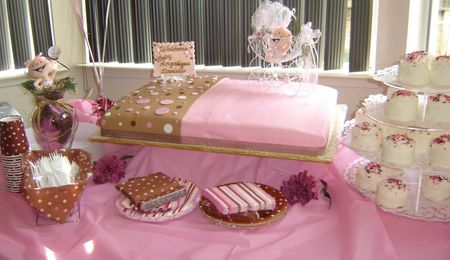 Sorry for the Crappy pic. This was a request for a cake to celebrate a neices's birth of 1 month, go figure. I was given the OK to design it anyway I liked, so this is what I came up with. This was my 1st tiered cake & it wasn't as hard as I thougth it would be. Vanilla cake filled with fresh strawberries & cream cheese filling on the bottom & top tiers and the middle tier was fresh banana & whipped cream, all frosted in Buttercream Dream & MMF decorations.