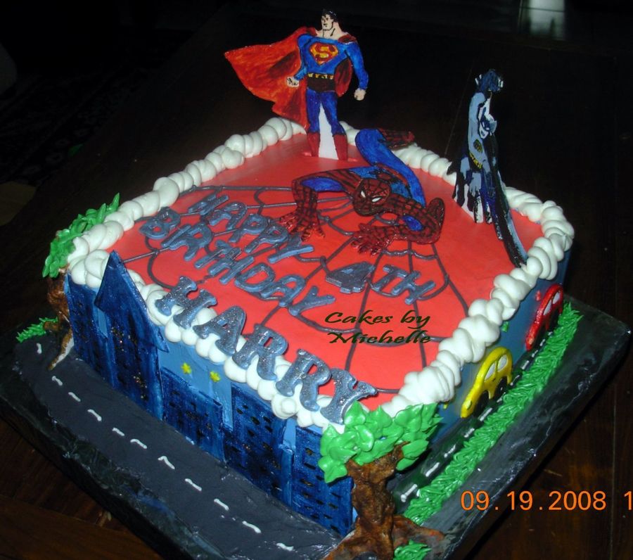Superman, Batman and Spiderman were handpainted on gumpaste.